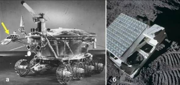 Первый «Луноход» «был доставлен на поверхность Луны 17 ноября 1970 года и проработал на её поверхности до 29 сентября 1971 года. Он проехал 10 540 м, передал на Землю 211 лунных панорам и 25 тысяч фотографий». «5 и 6 декабря 1970 г. в Крымской астрофизической обсерватории при помощи 2,6-метрового телескопа были проведены успешные эксперименты по лазерной локации лунной поверхности в районе стоянки лунохода („Правда“ №345 (19123) от 11 декабря 1970 г.)». А через 40 лет, 22 апреля 2010 года «Луноход – 1» был повторно «найден на поверхности Луны Томом Мерфи с группой ученых, отправивший лазерные импульсы с телескопа обсерватории Апаче-Пойнт в Нью-Мексико». Так что советские отражатели до сих пор лежат на Луне, но никогда СССР не пытался связать появление своих лазерных отражателей на Луне с «высадками» советских космонавтов. НАСА же появление на Луне трёх американских лазерных отражателей (илл.4б) сделала одним из основных доказательств якобы осуществлённых высадок. Хотя весьма вероятно, что НАСА возложила доставку отражателей на «Сервейеры – Х». [1] Аноним высказался по этому поводу, с очередным опровержением: «В главе 18 (стр.189) А. И. Попов опять уверяет читателя, что „Орбитеры“ могли передавать изображения Луны, которые американцы выдавали за снимки, сделанные астронавтами. А. И. Попов опять-таки игнорирует то обстоятельство, что „Орбитеры“ не могли передавать цветное изображение. Значит, их нельзя было выдать за снимки, сделанные астронавтами». [2] Почему не могли? Аноним на этот вопрос ответа не дал.
