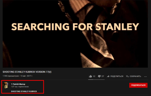 Оно фигурировало, якобы, на сайте «youtube» в ролике «KUBRICK RAW EDIT FIN». Слово написано на русском языке. В том то и проблема, что сам Том Патрик Мюррей не мог написать на русском языке слово «Юмор», на которое собиратель денежных средств, позеленевший «Кот Базилио» и обращает внимание, как на «признание» Мюррея в том, что он пошутил. Сайт Мюррея выглядит в русскоязычной сфере «youtube» совсем по-другому. Нет там русского слова «Юмор», которое было, якобы напечатано самим Томом Патриком Мюрреем. Быть его в принципе не могло. Автор ролика не знал русского языка. Но есть второй фильм Мюррея на эту же тему о том, как автор создавал фильм с интервью. В нем опять нет никакого признания в том, что это интервью подделка или шутка. В этом не трудно убедиться при просмотре страницы автора на сайте «youtube».