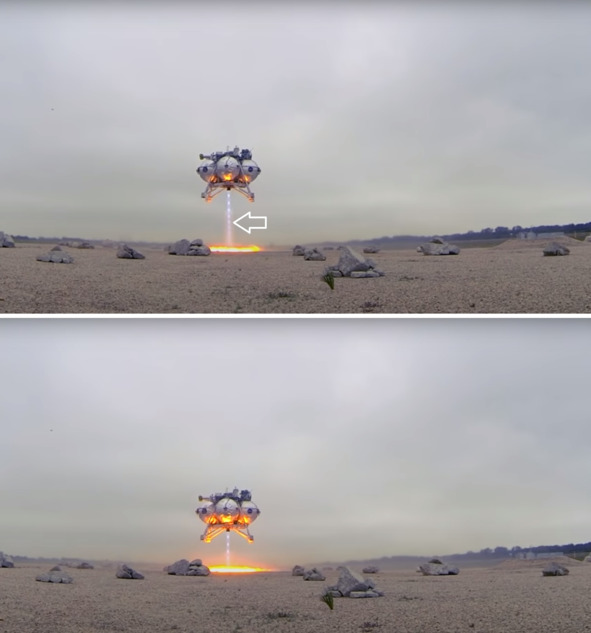 Но где-то они должны получиться. Что же, нам не остается ничего, как записать в свой блокнот выявленные странности». Аноним: «Что ж, нам не остается ничего, как посмотреть кадры и убедиться в наличии реактивных струй». [1] Аноним не показал этой картинки, а его ссылка давно не работает и не открывается. Аноним опять солгал. Таких кадров, о которых пишет «Никомо» в шоу «Аполлон» на сайте НАСА не существовало.