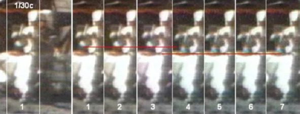То есть и этот прыжок Янга – вполне земной по высоте. На снимке 9в с помощью монтажа показана фигура астронавта при прыжке в 2 м высотой, о котором только рассказывают в своих воспоминаниях астронавты». [2] «Никомо» даже не попытался в своем пасквиле возразить, что для «астронавта», одетого в тяжелый скафандр такой прыжок для лунных условий можно считать высоким. Проблема такой аргументации состоит в том, что клоуны НАСА утверждали о своих прыжках высотой более двух метров: «Итак, получается, что высота прыжка, показанного Янгом, в 3 и более раза меньше тех максимальных прыжков, о которых рассказывал Армстронг (2 м). Нет особого смысла гадать, почему НАСА не подсказала астронавтам подкрепить свои рассказы о высоких прыжках соответствующими снимками и кино сюжетами. Надо просто констатировать, что демонстрация высоких прыжков, как одно из возможных доказательств пребывания астронавтов на Луне, отсутствует в фото – и видео документах НАСА». [2] Подтверждение слов американских обманщиков отсутствует. Прыжок, который зафиксировали американские сказочники, не соответствует лунной гравитации. Аноним ничего возражать не стал.
