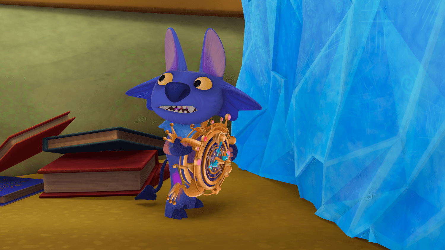 Дверь в аудиторию распахнулась, и внутрь вбежал гремлин с Волшебным Компасом в руках. Он бегал между партами и запрыгивал на столешницы. За ним в аудиторию влетел профессор Звездочёт.