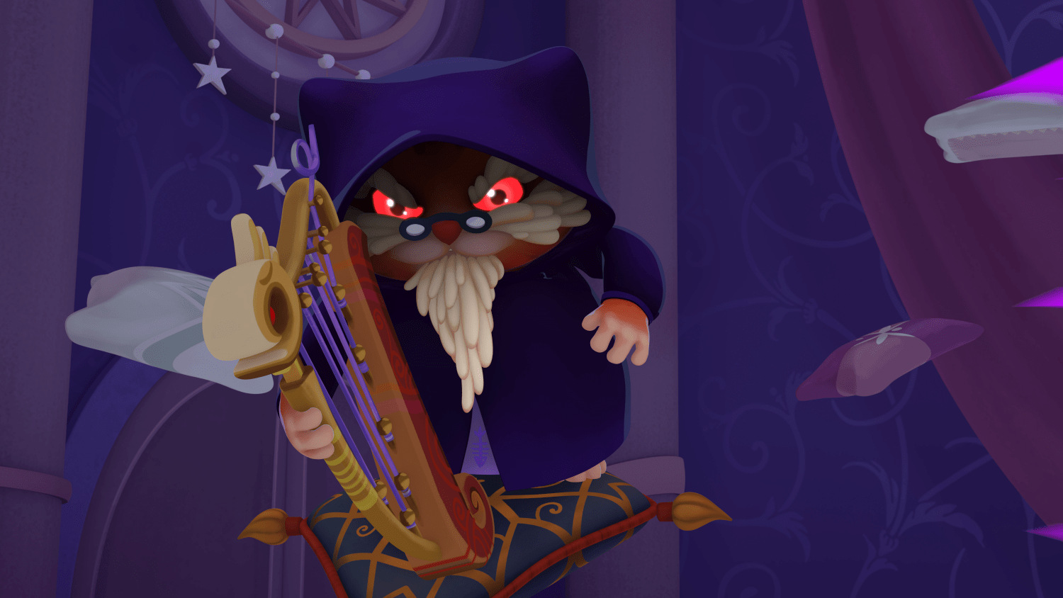 Астер потянулся к Волшебному Компасу, который держал Звездочёт, вцепился в артефакт и стал тянуть к себе. Но Маг Компас не выпускал: