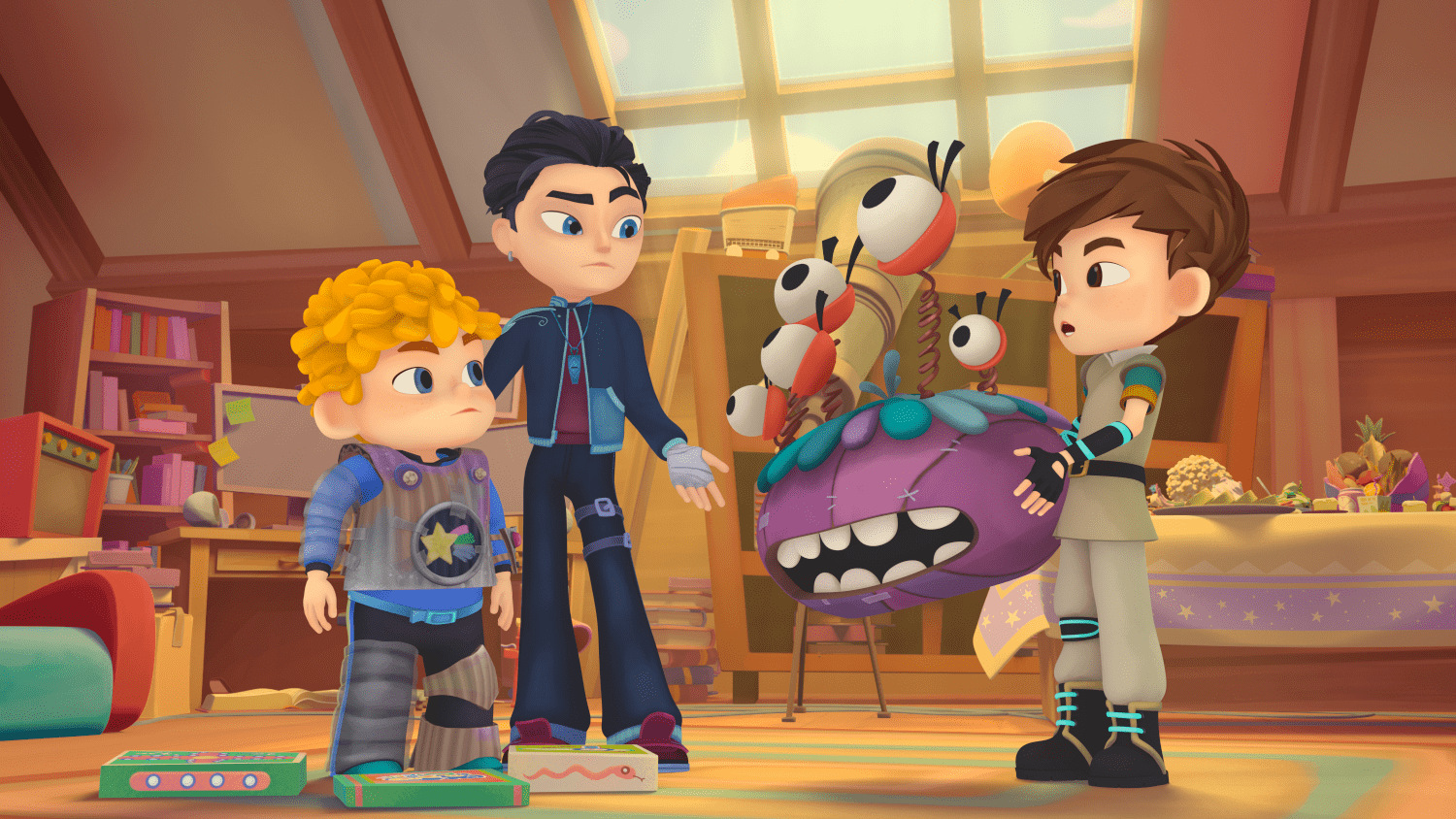 Ну, раз Морок пришёл, он тоже должен сделать подарок имениннику! Саша принёс огромную игрушечную голову инопланетного чудища с пятью глазами на пружинках: