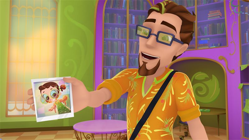 В это время в открытую дверь магазинчика влетела книга, хлопая страницами. Она приземлилась на полку и превратилась в самовар! За книгой вбежала Алёнка. Увидев профессора, она спрятала солонку за спину.