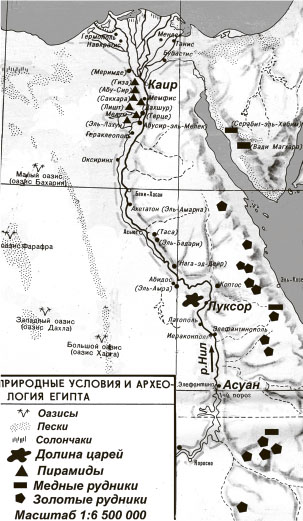 Рис. 7. Карта древних полезных ископаемых Египта и Синайского полуострова. Взято из книги «История Древнего Востока. Зарождение древнейших классовых обществ и первые очаги рабовладельческой цивилизации». Часть 1. Месопотамия. Под ред. П. М. Дьяконова. – Москва, Главная редакция Восточной литературы, 1983 (приложение: карты-вкладыши).