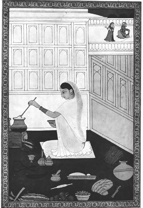 Индийская женщина за приготовлением пищи. Чамба, XIX в.