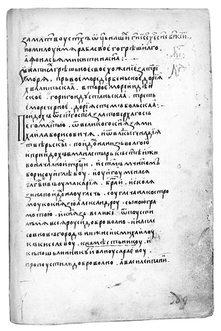 Сухановский список. ГПБ, F.XVII.17, л. 411 (начало текста)