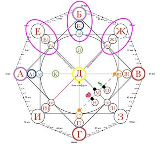 Точка Ж2 – талант рода матери, наработанный предками и переданный ребенку для раскрытия своего собственного таланта (точка Б2)