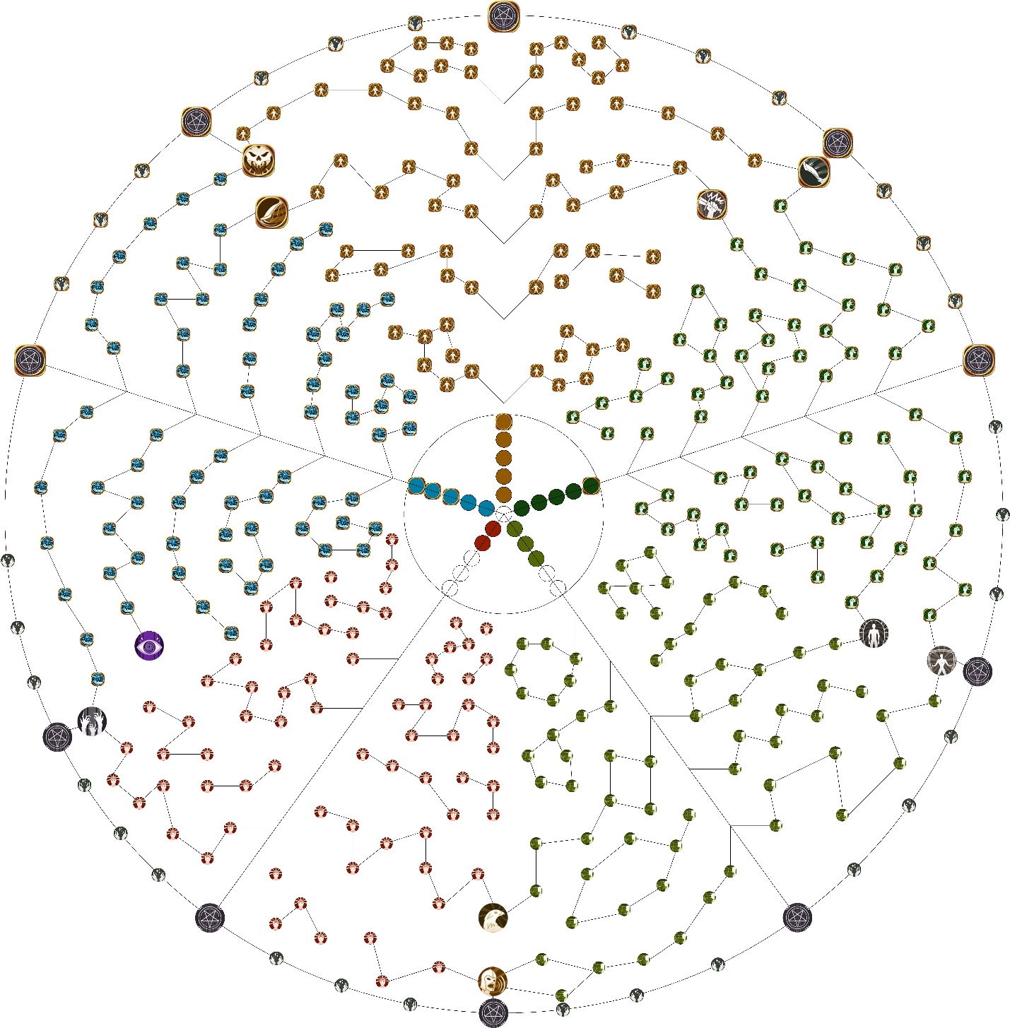 Стоило мне развить эти ключевые навыки, как от боковых «креплений» древ тела устремились в стороны по одному лучу, а от ключевых навыков основного древа по два луча сразу, которые прицепились за ключевые навыки сразу двух древ – Демона и Смерти. Навыки я пока не видел, так как нужно было развить ключевые навыки и там… и стоили они тоже десять очков пассивных навыков и как пять стоимостей возрождений, которых у нас больше нет… издёвка какая-то над нами.