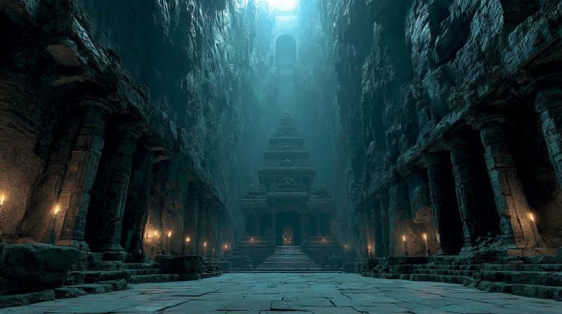 Колонны, взметнувшиеся ввысь, подпирают треснувший каменный свод. Между ними тьма и влажный воздух, в котором ощущается привкус затхлости и плесени. Каждый опорный столб усеян белесыми прожилками извести, темными подтёками и налётом времени – создается ощущение, что скала постепенно поглощает колонны обратно, сантиметр за сантиметром.