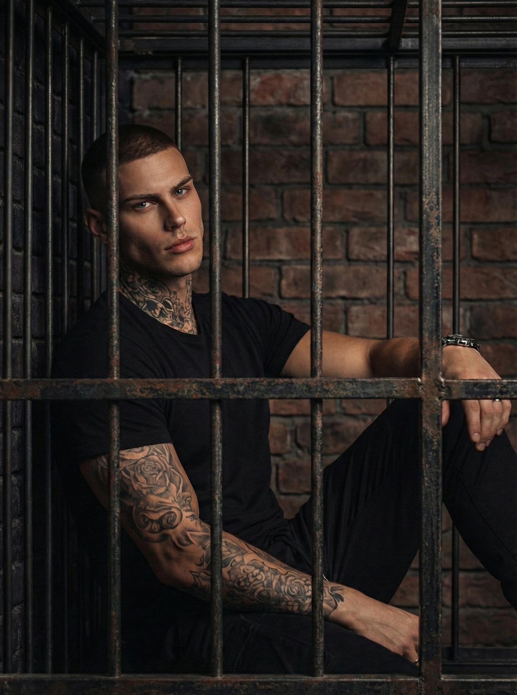 На меня смотрел бритый почти под ноль темноволосый парень лет двадцати пяти. Расслабленная поза, уверенный взгляд голубых глаз, широкие, гладковыбритые скулы, сексуальная усмешка. Он сидел, прислонившись к стене. Рука, свисающая с колена, была забита татуировками, и я бы с интересом изучила каждый завиток, но было не до этого.