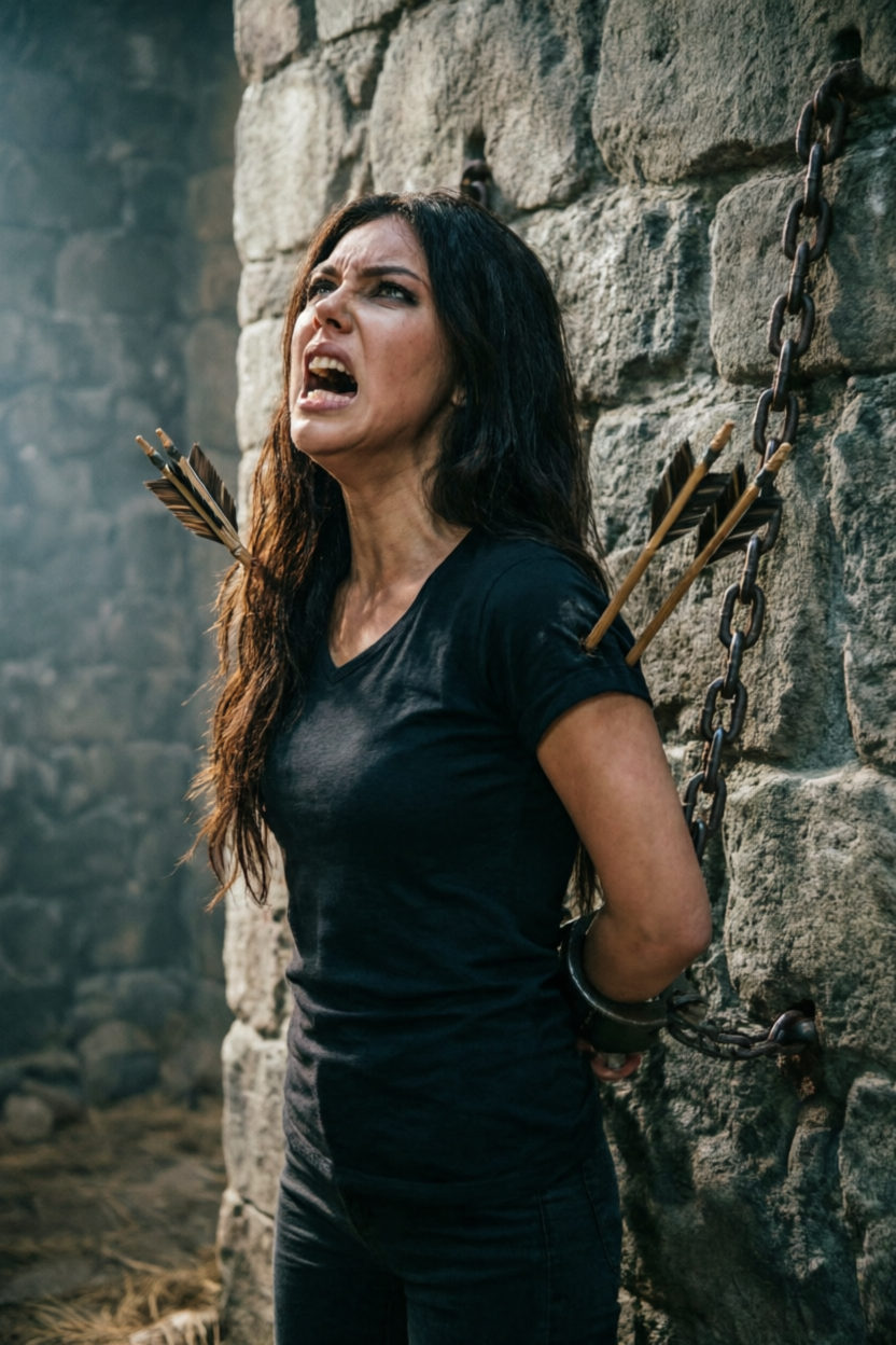 Пульсирующая боль в плече, отдавала в каждую клетку мозга и словно заставляла его истекать кровью, вместе со мной. Тёмные пятна перед глазами не помешали увидеть короткую стрелу, в момент, когда я вынырнула из мыслей и взглянула на плечо. Переведя взгляд на мужчину у противоположной стены, уловила усмешку на его губах, удовольствие в зелёных глазах и арбалет в правой руке. Не успев моргнуть, услышала щелчок, помогла взглядом следующей стреле преодолеть расстояние до меня и войти в правое плечо. Боль. Звук от удара металлического наконечника о каменную стену позади меня. Стрела, прошедшая насквозь и пробившая мою плоть. Крик из глубин души. Слезы из глаз. Злобное шипение в закоулках разума, щекотка под кожей. Моргнула. Пятна перед глазами из чёрных, переоделись в красные. Звуки исчезли. Затем и пятна. Я перестала кричать. Голова поникла, как и всё тело.