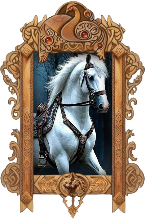 – Конь? – громко воскликнула я, когда Иван, вопреки моим ожиданиям, повёл меня не в сторону деревни, а на какую-то очередную поляну, где возле дерева был привязан огромный белый конь. Именно огромный, словно сошедший с картин про богатырей. Обычная лошадь таких молодцев просто не выдержала бы.