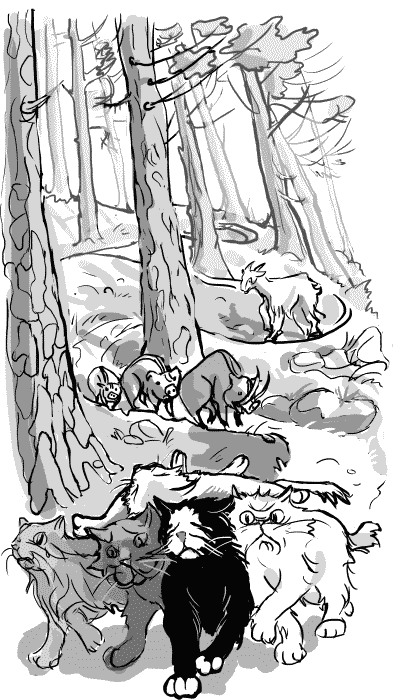 Коты покрутили головами и никого не обнаружили. Кабаны принюхались. А белки закричали: