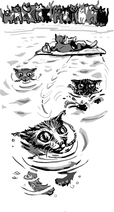 За ней пристроились две белки; за белками – лесной хомяк по кличке Хома Сапиенс, за Хомой – медленная черепаха. А возле берега их поджидало целое семейство кабанов; узнав от Хрюрика о смерти Мурдыхая, мама, папа, дедушка и бабушка решили проводить кота в последний путь. Над головами низко пролетали птицы, которым новость принесла сорока, уверив их, что совершилось чудо и коты на них не нападут.