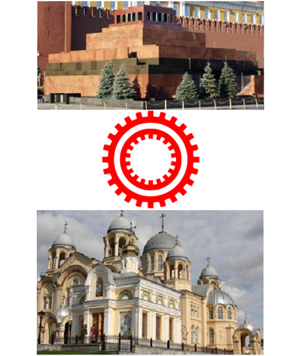 Классическая архитектура Мавзолея стала продолжением храмовых построек древнего Вавилона (мира), с типичным проклассическим типажом, воплощавшее магическую связь отдельных, как бы разрывных, частей бытия, вследствие чего мистическая среда Вавилона и Московского государства памятным заякорением укреплялась и становилась более могущественней. К этому следует добавить еще и ту особенность, что ярусное строение делает объект ступенчато-угловатой формы, а это еще более подчеркивает его отношение к гармонии, к ее энергетической основе, ведь известно, что в мистицизме один угол излучает отрицательную энергию, а другой, концентрирует положительную. Поэтому научно-магическая основа проочеловеченного Вавилона, вследствие чего, еще в начале истории его народ решил, что он всемогущ и даже может сделать себе имя в истории огромной до «Небес» постройкой, что в последующем зороастризме развилось еще до больших высот знаний древнего мира, равнозначна научно-магической основе гуманистического социализма и его высшего выражения – саморазвитие, доказательством чего служит «Капитал» (напоминание: идея саморазвития, краеугольная в материализме, была взята из мистицизма, а сама научная подноготная «Капитала» – неизбежное вхождение в фазу общественной гармонии вследствие обобществления средств производства, – является продолжением идеи энергетической гармонии мистического мира). Поэтому шумеро-вавилонский зиккурат и Мавзолей это выражение вектора следования общества к мировой гармонии – казавшиеся два изображения различными по внутреннему содержанию являются одним и тем же. Это отображение духовной связи солнце-лунно-фаллической направленности личностей в них захороненных, вектора мистической науки, которая, в свою очередь, есть фактор обожествления природы, что, в свою очередь, совпадает с внутренним положением русской церкви по обожествлению человека, а поскольку человек является частью природы, а обожествление части обожествляет целое – церковь обожествляет природу (что, в сущности, исторически лишь подтверждается, как из православного культа невежественности вырос, или, точнее сказать, эволюционизировался культ науки). Дело в том, что в самой архитектуре русского храма эллинистической культурой присутствует основа зикукуратизма, т.е. мировоззрения целостности Бытия, воплощенное в классическом стиле, ярусности со строгим правилом золотого сечения (внутри на стенах с последовательным изображением иерархии всех святых и ангелов), с неотъемлемым набором элементов башенок с присовокуплением к ним луковичных глав. Поэтому архитектура православного храма несет двойственную природу – проповедование о Боге путем Его искоренения, и фактически в состоянии искоренения является прообразом (эволюционной ступенькой) зиккурата, другими словами, мавзолей это пиковая форма православного храма. Поэтому и шумеро-вавилонский зиккурат, и Мавзолей, и православный храм с его «святыми» терафимами-мощами, все это суть одно и то же, так называемые антенны в мистицизм – проводники магического устройства Вселенной, иллюзорные разновидности способностей приближения к «Небесам» и обожествления подвластной территории, в данном случае обожествления мистической Руси, царства справедливости и свободы. Поэтому передовая (в 20 в.) в тех