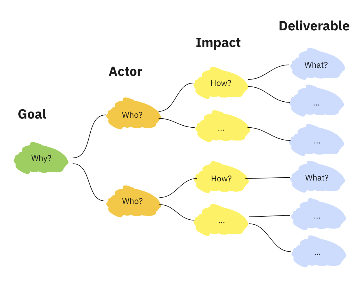 Мы уже познакомились с этой техникой в прошлой главе, а сейчас я расскажу, каким образом формулируются идеи, которые являются самой сложной и самой ценной частью Impact Map. И ещё поделюсь своим ви́дением, как наиболее эффективно воспринимать каждую из частей Impact Map.
