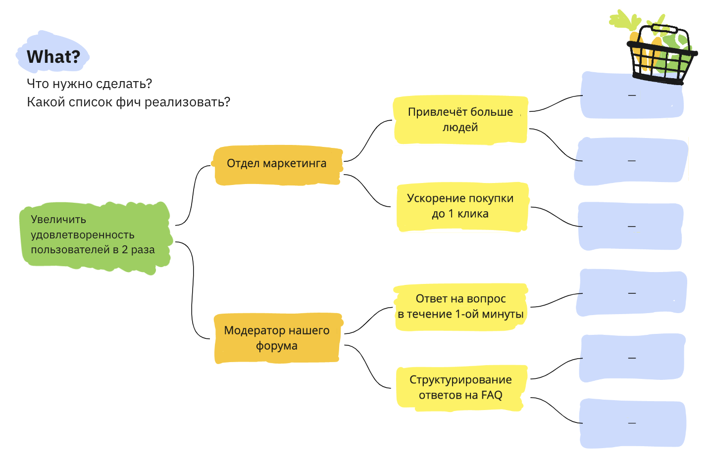 Мы дошли до самого несущественного в Impact Mapping. В последнем узле нашей карты находится та самая корзина с покупками, с которой обычно начинается работа над проектом. Разница в том, что теперь мы понимаем ценность каждой фичи, почему эта фича здесь и к чему приведёт её реализация (рис. 9).