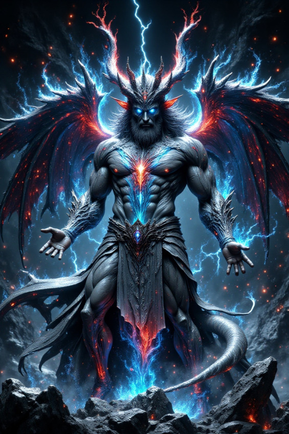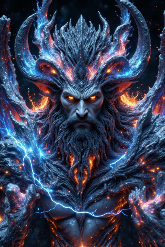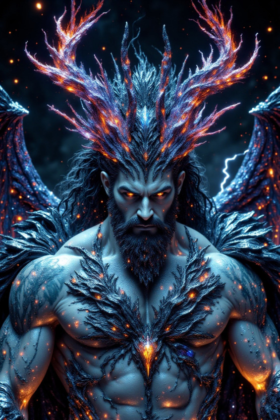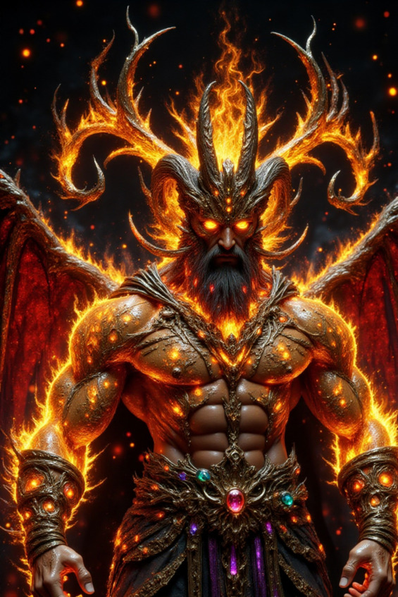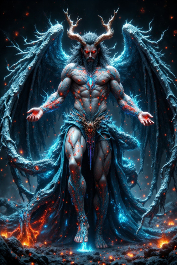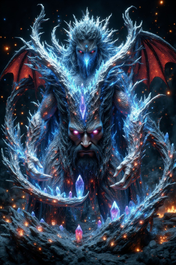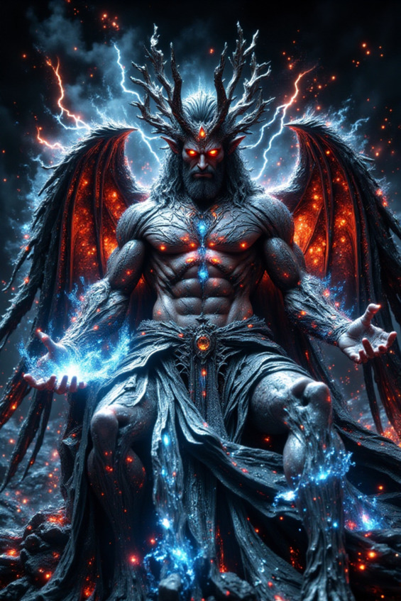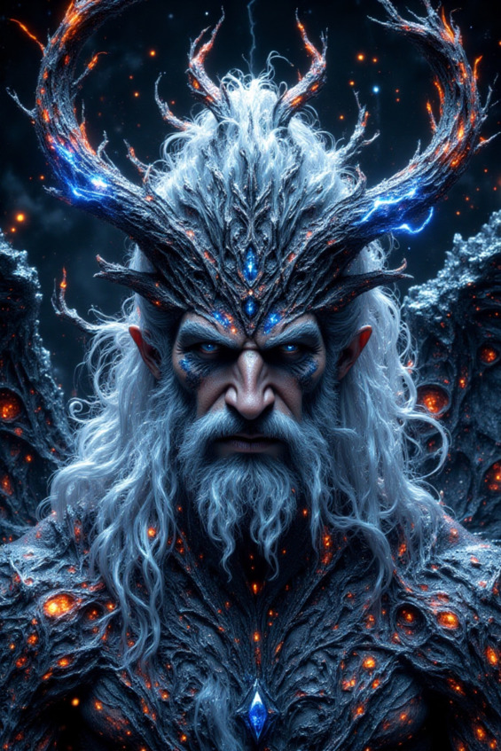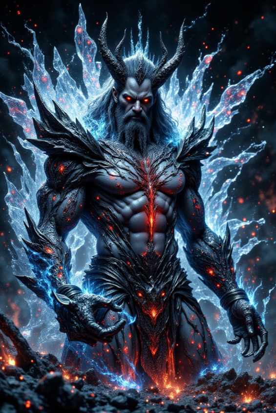 В этом царстве, где время остановилось, Чернобог правит беспрекословно, напоминая всем, кто осмелится войти, о вечной борьбе света и тьмы. Его образ – это символ непреодолимой силы и вечного противостояния, вызывающий одновременно ужас и восхищение его могуществом.