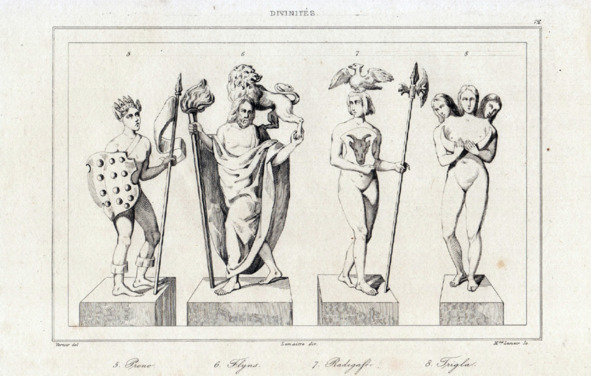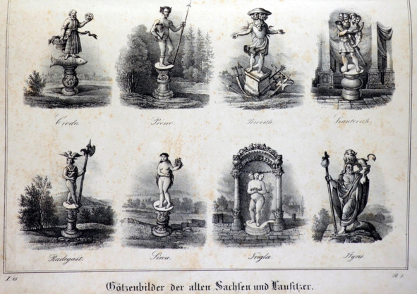 А, как вам такое изображение германских (славянских?) богов из книги «Saxonia. Museum für Sächsische Vaterlandskunde. Erster Band» (Саксония. Музей саксонского отечества. Первый том в 24 выпусках с 74 литографированными приложениями, выпуски 1—24 (май 1834 г. – апрель 1835 г.). В одном томе.) на 72 странице55