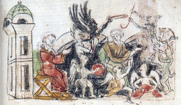 Изображение дьявола в книге Codex Gigas. XIII век.