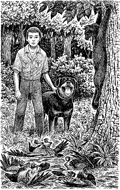 Это была пантера. Она была больна. В боку у нее совсем не было шерсти, торчало наружу мясо, а по нему ползали жирные черные мухи. Пантера их даже не сгоняла. Может, она устала, а может, ей было уже все равно.