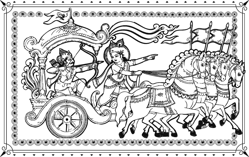Обзор армий на поле битвы Курукшетра. Среди великих воинов, в совершенстве владеющими всеми видами смертоносного оружия, Арджуна видит своих друзей и близких родственников. Он осознает братоубийственный характер войны, и поэтому предвидит ужасные последствия, такие как полное вырождение великой династии Куру, что означало конец арийской цивилизации. Арджуну охватывает глубокая скорбь, и он больше не понимает в чем состоит его долг воина, который на самом деле должен защищать мир от распада и уничтожения. Он хочет отказаться от битвы.