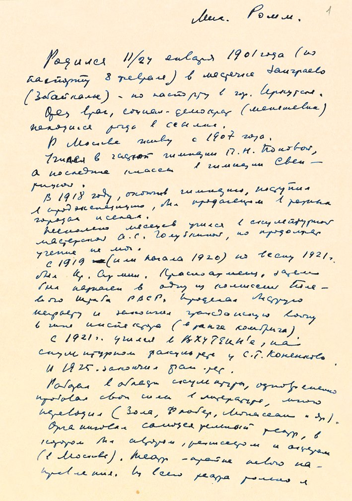 Первая страница автобиографии М. И. Ромма