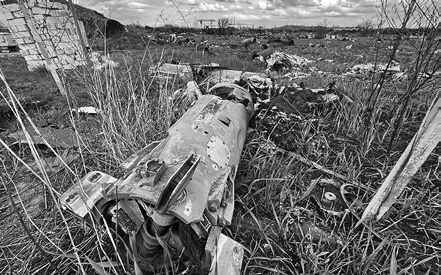 Главная достопримечательность Балаклеи – старейший и чуть ли не крупнейший арсенал в Европе. С 2014 года именно отсюда боеприпасы всех возможных калибров отправлялись в Донбасс и бомбили мирные города. В 2017 году на складах случился пожар, снаряды разлетались на десятки километров. Следы видны до сих пор – хвостовики всевозможных ракет в апокалиптических масштабах разбросаны по всей территории 65-го арсенала. Кажется, никто здесь не собирался приводить склады в порядок. Рвануло в основном то, что хранилось под открытым небом. А около трехсот бетонных ангаров не пострадали.