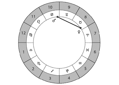 Для начала нужно проинтерпретировать каждую из планет, образующих аспект, в ее доме относительно знака Весы. Мы уже говорили о Марсе в десятом доме – это может быть все та же стрессовая ситуация в отношениях с начальником или усилие ради того, чтобы продвинуться в карьере. С другой стороны аспект формирует Венера в восьмом доме. Ее тоже можно проинтерпретировать несколькими разными способами: заем на выгодных условиях, хорошая возможность вложить деньги, или может сложиться ситуация, в которой сексуальная привлекательность наших читателей-Весов произведет сильное впечатление на других людей.