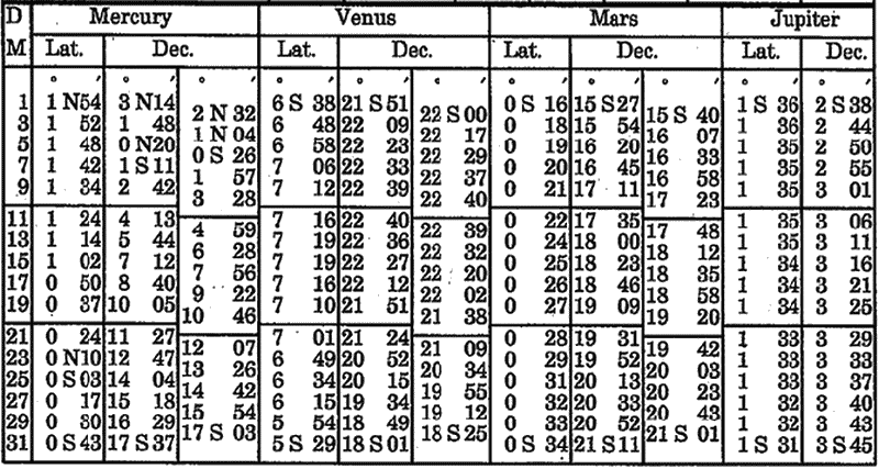 Рис. 43.3. Эфемериды Рафаэля левая сторона, фрагмент со склонениями