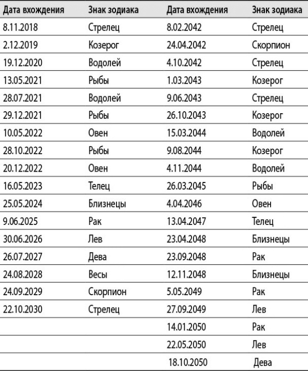 21°25’43’’ Скорпиона – 4°17’09’’ Стрельца.