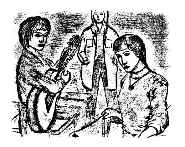 Юля, будто не находя себе занятия, взяла гитару и, усевшись на стол, принялась выводить какую-то мелодию.