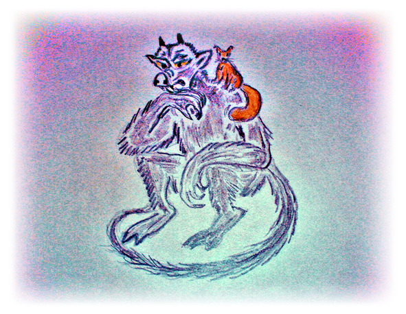 – Как козёл и выглядит, только нос – «пятачком», как рыло у свиньи, рога – поменьше чем у козла, хвост – как верёвка, копыта на нижних конечностях, верхние конечности – как у обезьяны, всё тело шерстью покрыто.