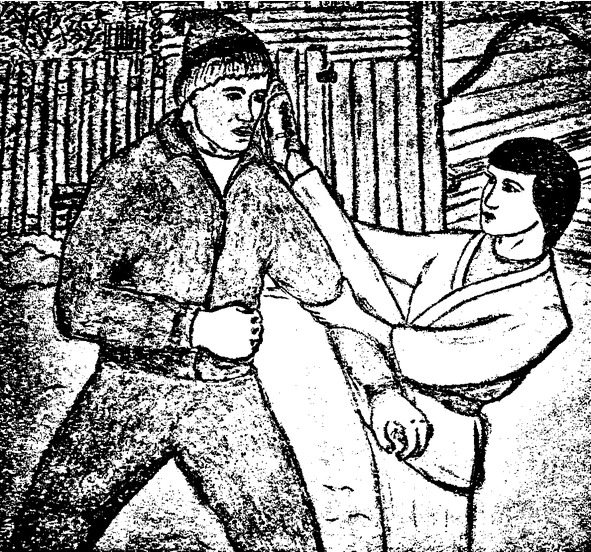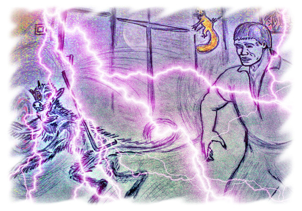 Перед ним стоял довольно крупный чёрт и, ехидно улыбаясь, поигрывал кочергой. Борис отпрянул, но тут же ухватился за кочергу и без замаха, коротко и жёстко, ударил рогатого кулаком в рыло. Чёрт, взвизгнув, отлетел и, пошатываясь, полез в стену.