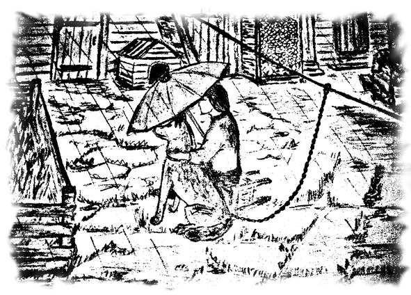 Видя, что дождь усиливается, а Фрэд продолжает сидеть, глядя в ту сторону, куда уехал соседский УАЗик, Катя вошла в дом и вскоре вернулась с зонтом и с табуреткой. Открыв зонт, она подошла к Фрэду, положила табуретку на бок и, устроившись рядом с псом, накрыла его зонтом.