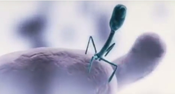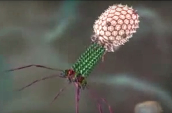 В этом фильме наглядно показано то, как бактериофаг инфицирует бактерию: https://www.youtube.com/watch?v=Bgbe5vLDFXg.