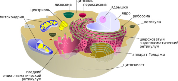 Известно, что тело клетки, в отличие от вируса, отделено от окружающей среды мембраной, или плазмалеммой. Внутри клетка заполнена цитоплазмой, в которой расположены различные органоиды (или, иначе, органеллы) и клеточные включения, а также генетический материал в виде молекулы ДНК.