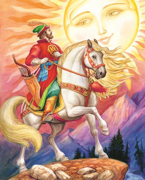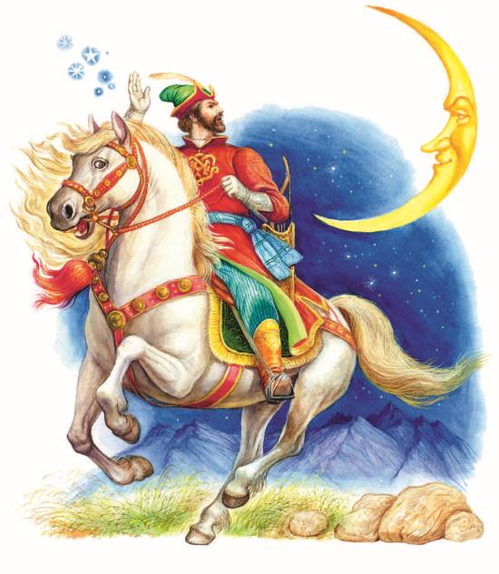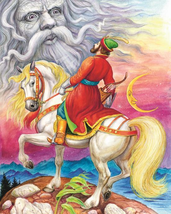 Колдун несёт богатыря;
