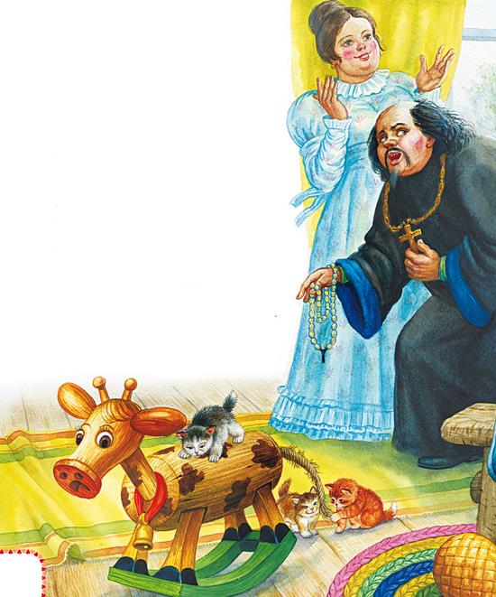 А поп, завидя Балду, вскакивает,