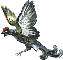 С тех пор каждое утро, как только занималась заря, из кладовки раздавались призывные крики: «Чу-фшшшш, чу-фшшшш…» И в ответ на этот призыв откуда-то из лесу на поляну за школой слетались чёрные краснобровые петухи, чтобы начать там свой весенний турнир.