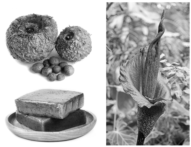 Говоря об оригинальных японских продуктах, не слишком знакомых европейцам, нужно вспомнить и о конняку – желе из корня растения, которое за свой внешний вид, помимо строгого научного названия Аморфофаллус коньяк, получило ещё и «народные» прозвища – Дьявольский язык и Ладонь змеи.