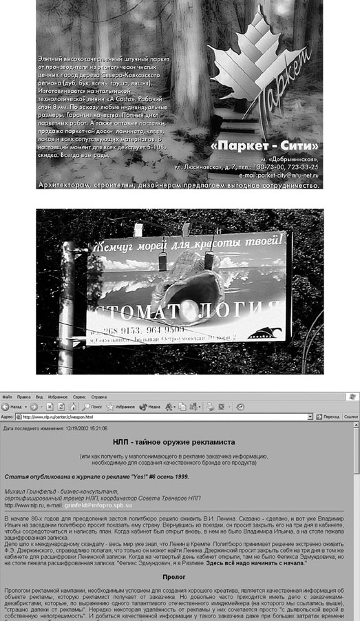 Работа с ним проходит очень интересно, в атмосфере творчества и взаимного обучения. Это надежда российской рекламы. Именно такие пытливые аналитики натолкнули меня на мысль написать эту книгу. И именно на них я опробовал рукопись этой книги, и именно их замечания и пожелания интересовали меня в первую очередь.