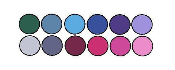 Какие цвета подойдут? Прохладные, вплоть до ледяных. Исключаем любые оттенки жёлтого, а также ярко-красный. Смотри примеры: