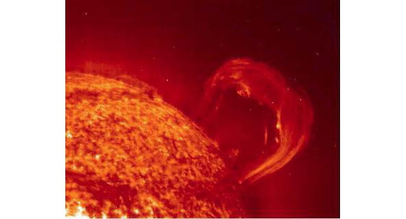 Солнечная вспышка совершенно безопасна для человечества. Её энергия ничтожна по сравнению с полной светимостью Солнца. Однако её влияние на Землю связано с выбросами корональной массы – это облако плазмы массой от одного до десяти миллиардов тонн, которое покидает Солнце и устремляется в космос. Слабые выбросы быстро рассеиваются и смешиваются с окружающим солнечным ветром – явление ежедневное. Реже они бывают достаточно мощными, чтобы преодолеть межпланетные расстояния. Около 90% даже самых мощных вспышек (класса X) сопровождаются выбросами корональной массы. Выброс корональной массы – это поток быстрых протонов и электронов и некоторых других частиц. В момент вспышки солнце может вытолкнуть такое облако плазмы. Куда оно будет двигаться? Если в сторону Земли, то даже при его скорости 600—900 км/сек, ему понадобится на это двое-трое суток, чтобы преодолеть расстояние в сто пятьдесят миллионов километров.