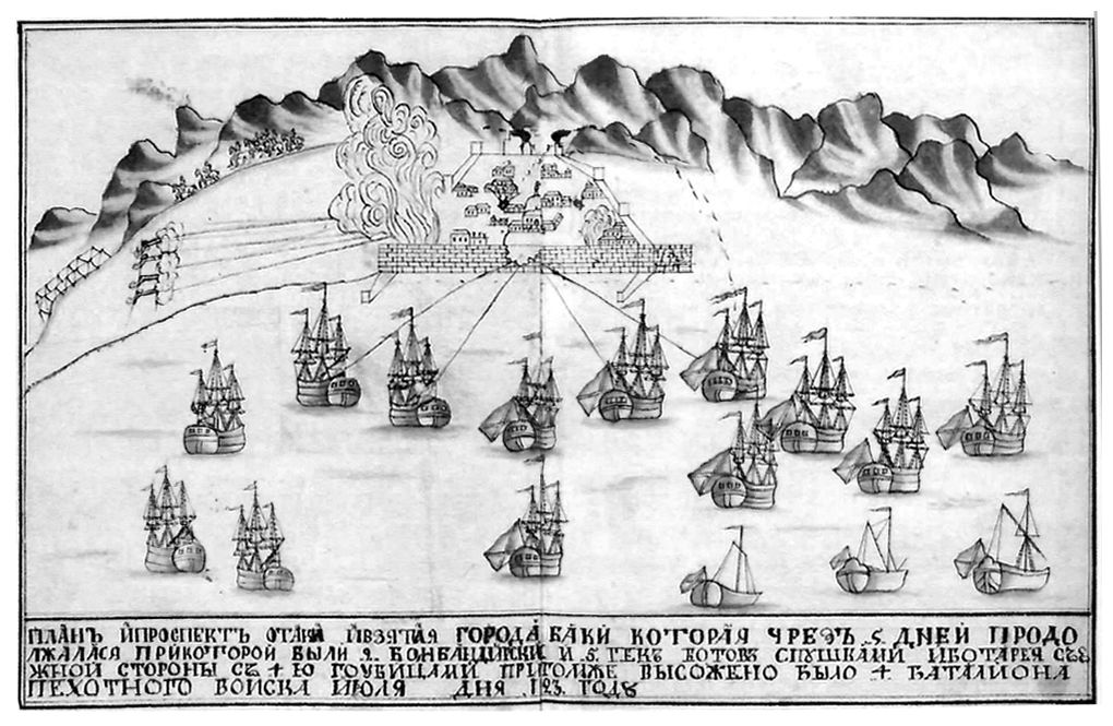 Тогда Матюшкин приказал высадить десант. Атака персидской конницы, стремившейся помешать высадке, захлебнулась под огнём судовой артиллерии. У стен Баку русские выстроили две осадные батареи. 22 июля началась бомбардировка города, в которой помимо осадных батарей приняли участие и семь гекботов[19]19