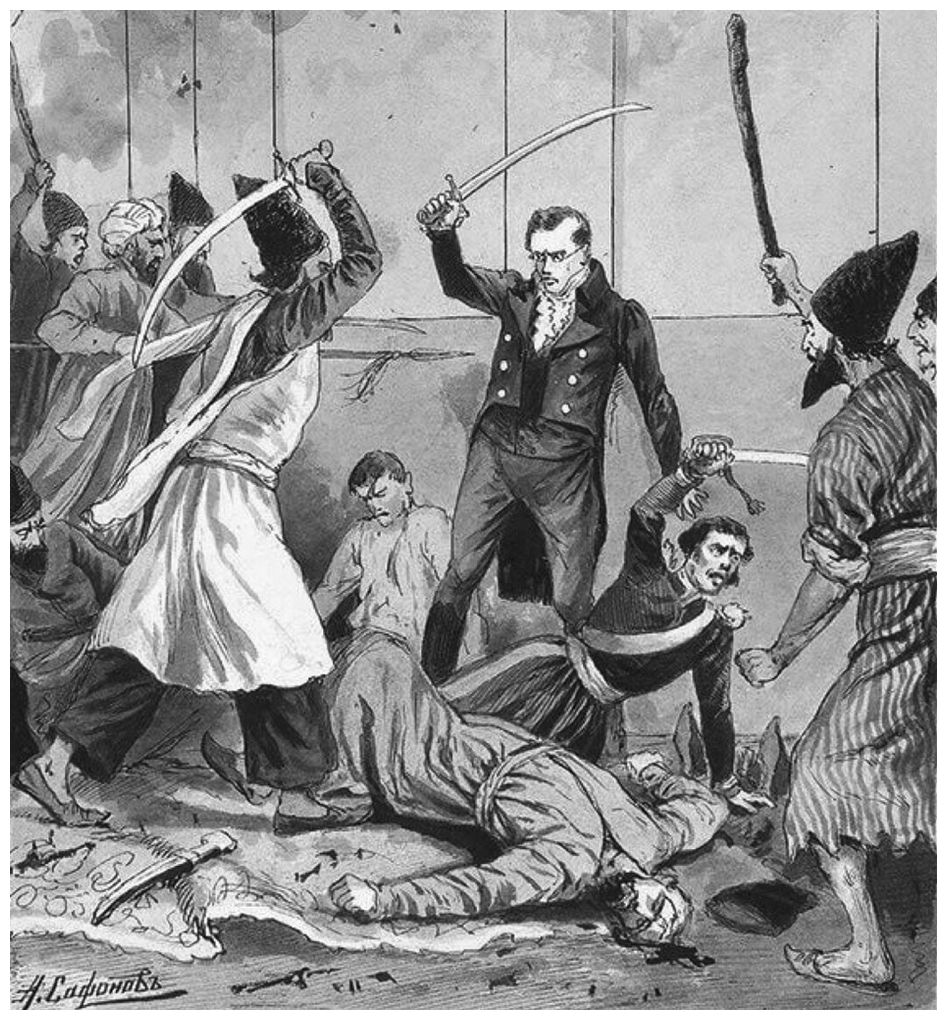 30 января 1829 г. разгневанная толпа предприняла штурм дома, где находилось русское посольство. Всего было убито 37 русских. Труп Грибоедова оказался столь изуродован, что его опознали лишь по шраму на руке. Нападавшие потеряли, по русским источникам, от 19 до 80 человек.