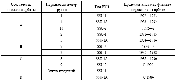 Как видим, только две группы ИСЗ SSU (5-я и 8-я) проработали на орбите по два-три года. Это могло быть связано с неисправностями ИСЗ – при выходе из строя даже одного спутника оперативность и точность засечки координат радиоэлектронных средств значительно ухудшаются.