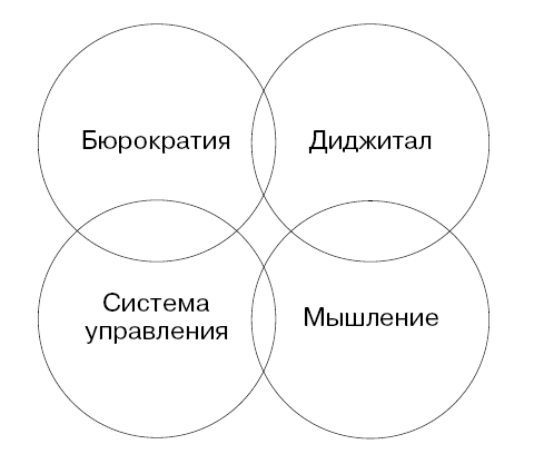 Четыре всадникаГоворя о связи деятельности и эффективности, в каждой главе мы будем рассматривать очередной этап улучшений, включающий те или иные управленческие подходы или аналитические инструменты с позиции четырех всадников: Б – Бюрократии, Д – Диджитала (или Цифровых решений), С – Системы управления и М – Мышления (см. рис. 1).
