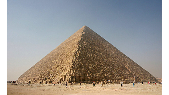 1. Пирамида Хеопса. Возраст сооружения 2500 г. до н. э., по другим данным – 10 000 лет до н. э. Сторона основания 230 метров, начальная высота 146 метров. Наклон 51º. Средняя масса блоков 2,5 тонн, вес монолита над «Камерой царя» 35 тонн. Основание располагается на скальном образовании, высотой 12—14 метров.